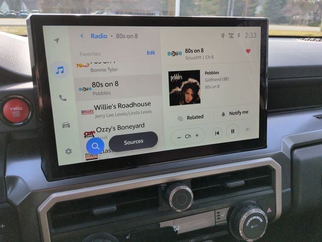- Radio: 8" Toyota Audio Multimedia -inc: touchscreen, 6 speakers, wireless Apple CarPlay and Android Auto compatibility and SiriusXM w/3-month Platinum Plan trial subscription, See toyota.com/audio-multimedia for details